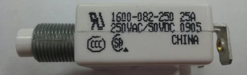Push to Reset 25 Amp White Button Circuit Breaker, Bent Screw Terminals