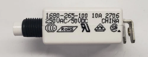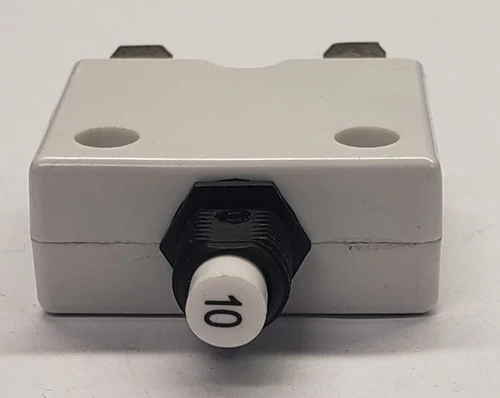 1600-037-100 Push To Reset Circuit Breaker, 10 Amp, White Button, Spade Terminals