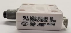 2 Amp Push to Reset Black Button Circuit Breaker, Bent Screw Terminals