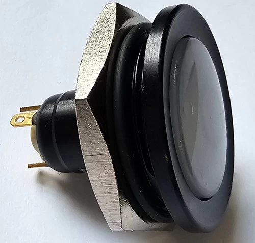 30 mm Sealed White Push Button, Normally Open, 12 Volt White LED