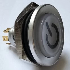 30 mm Sealed Power Push Button, 2 Circuit, 12 Volt White LED