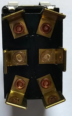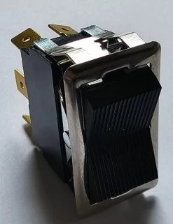 (On)-Off-(On) DPDT Rocker Switch, Black Lined Actuator, Silver Bezel